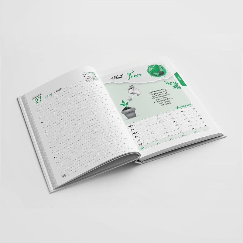 • Theme page with planner before every month with index cut
