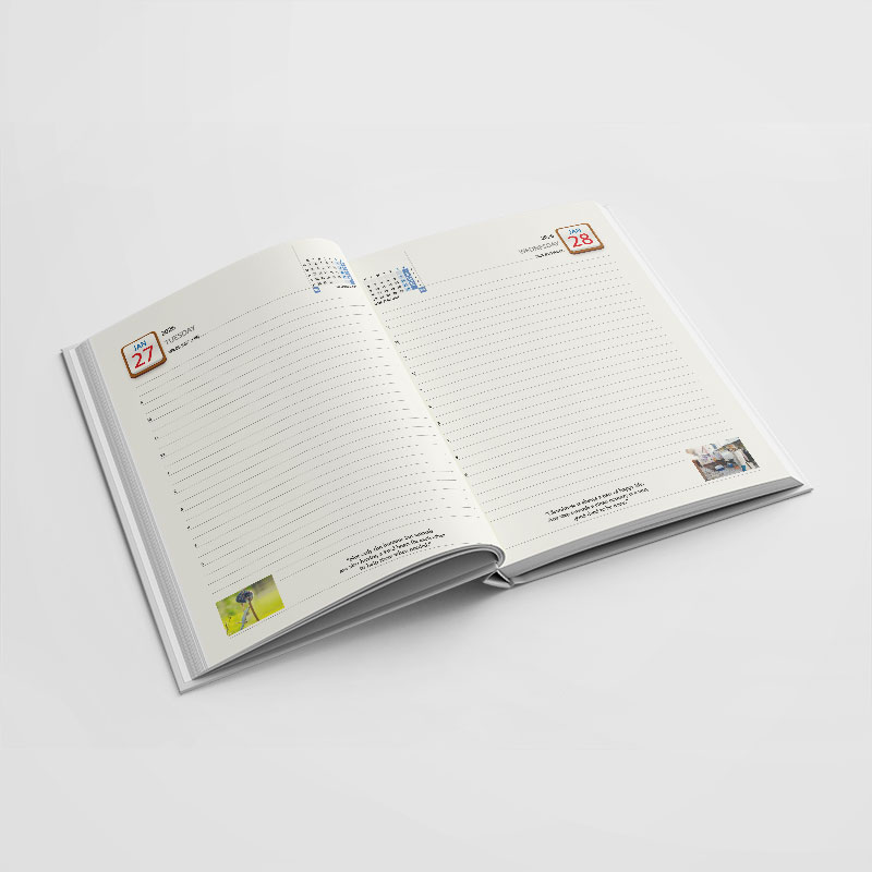 • Coloured theme page before every month with index cut