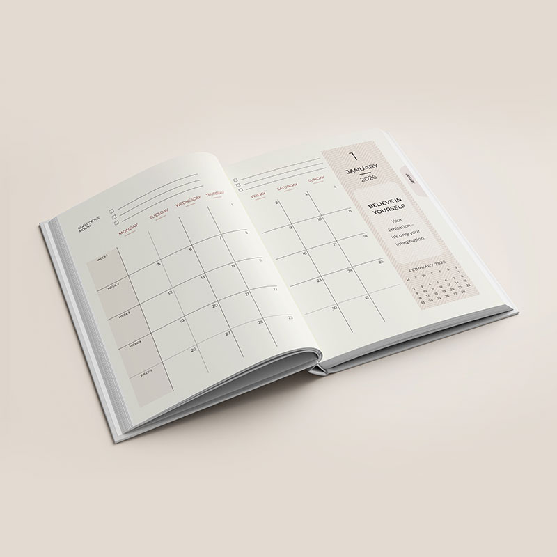 • Two page planner before every month with index cut
